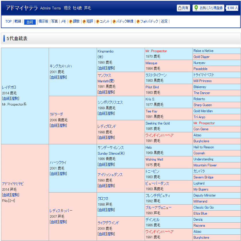 レイデオロは種付け料200万円まで落とされてしまったが、牡馬で上記血統を持っている馬に限れば1000万級のポテンシャルを持っていると思っている。